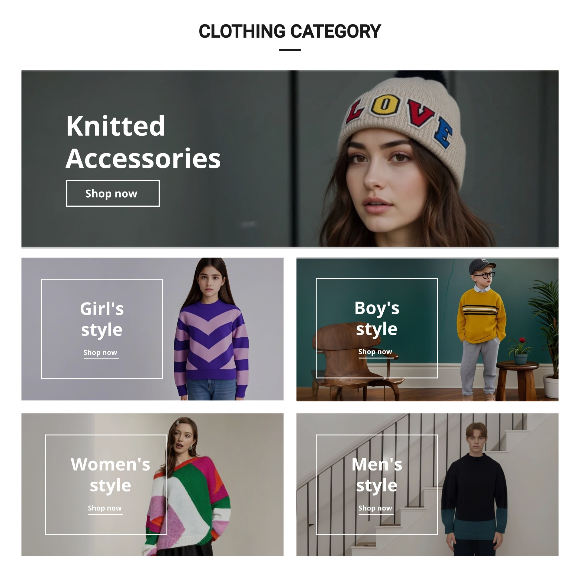 Main categories: sweater,woven,accessories